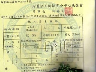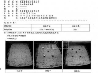 在荷蘭一所獨立且具公信力的環保實驗室使用目前最嚴苛的實驗方法,將含有各種強酸性及有害元素如:砷、鎘、鉻、銅、汞、鉛、鎳、錫、鋅等物質混入溶劑中將此含有物質的溶劑倒在本公司所採用的纖維草上,此規範為目前保護士壤潔淨的最高標準試驗方式,結果依照對土壤的保護程度分別以A,B,C,D,E,‥來區分其對土壤的友善度。實驗的結果本公司產品在保護土壤效果上歸類於A等級,也就是說最環保的等級。